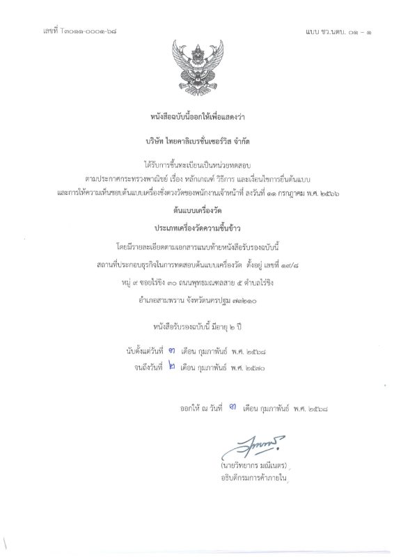 รับรองโดยกองชั่งตวงวัด กรมการค้าภายใน