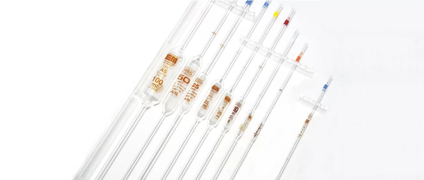 | Volumetric pipette | 1 cm3 to 100 cm3 | – |
